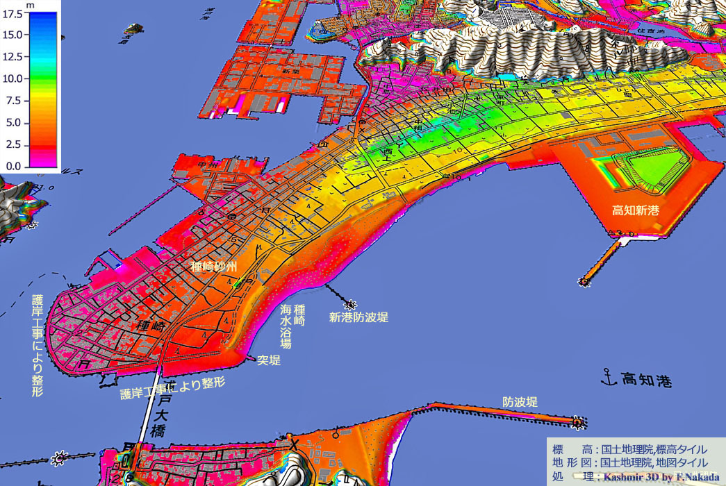 | 地形(標高段彩図)の三次元イメージ : 種崎砂州 |