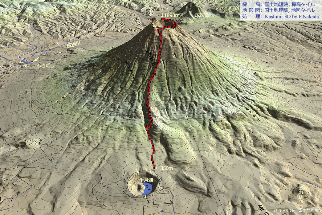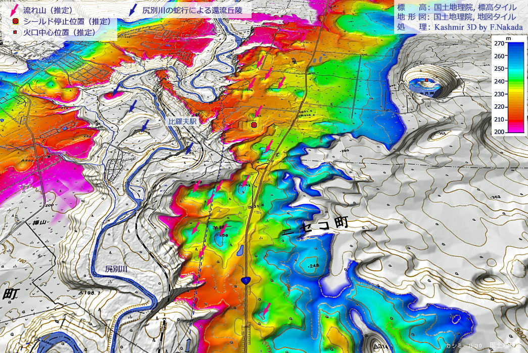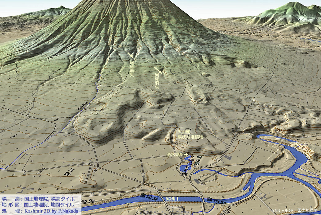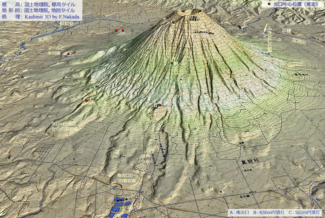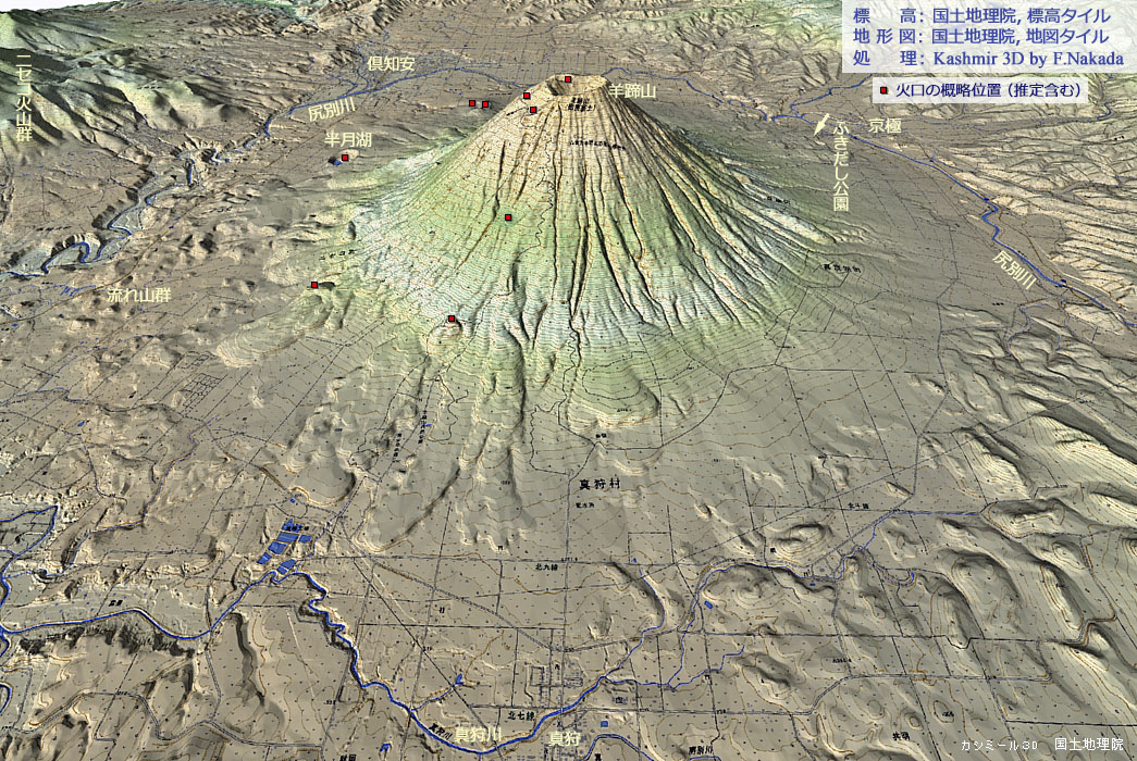 羊蹄山,火山地形,成層火山,溶岩流,流れ山,スコリア丘,山体崩壊,岩屑なだれ,日本百名山 |