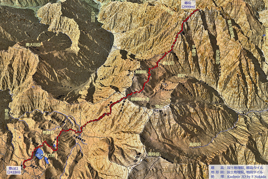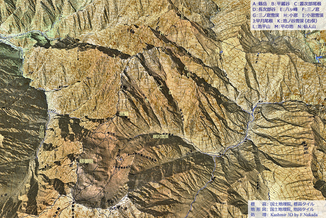 三次元地形図上でマウスクリックすると「5万分の1 地質図幅『立山』(出典,下記)」を表示します。 ダブルクリックで元に戻ります。![]() 5万分の1 地質図幅『立山』 の主な凡例は,ここをクリックしてください。 別ウィンドウで表示します。 |