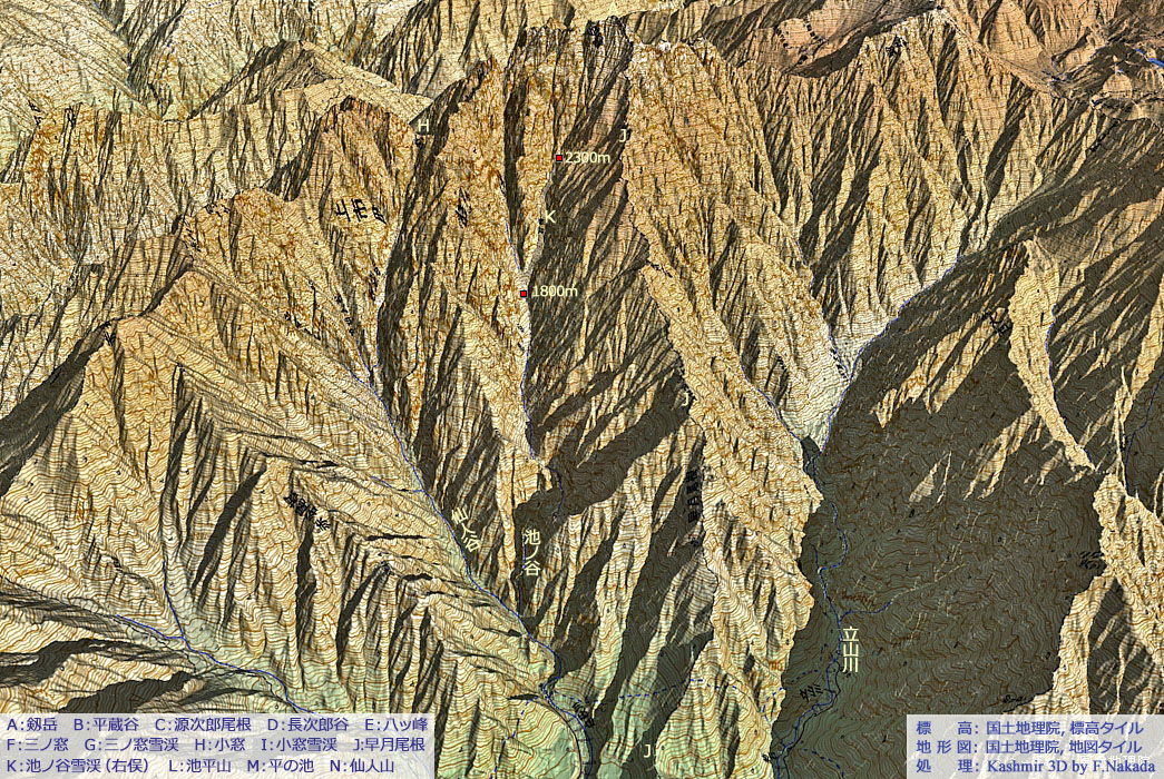 | 地形の三次元イメージ : 西側斜面の氷河地形(池ノ谷氷河) |