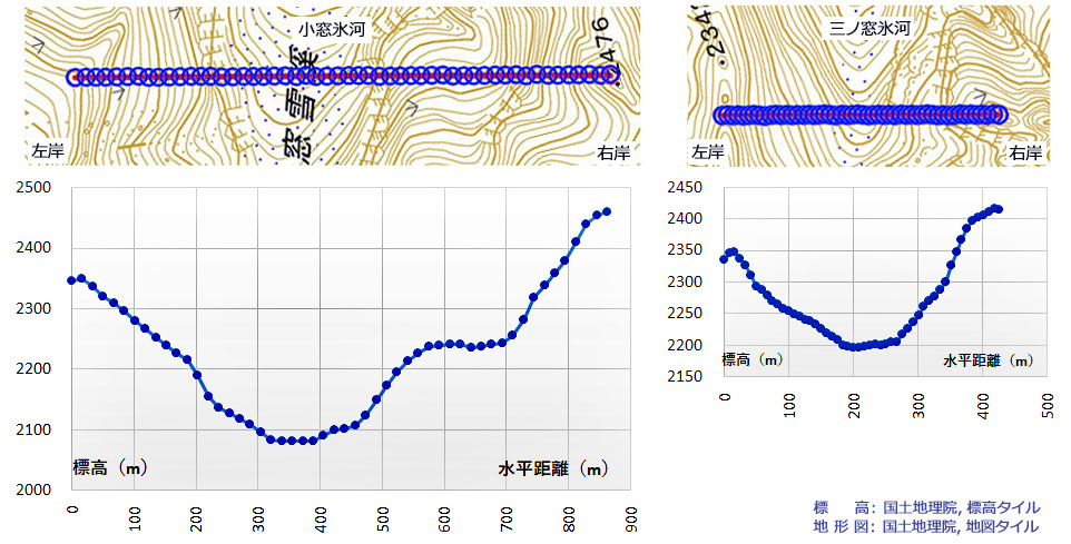 | 【地形断面図】 小窓氷河,三ノ窓氷河 |
