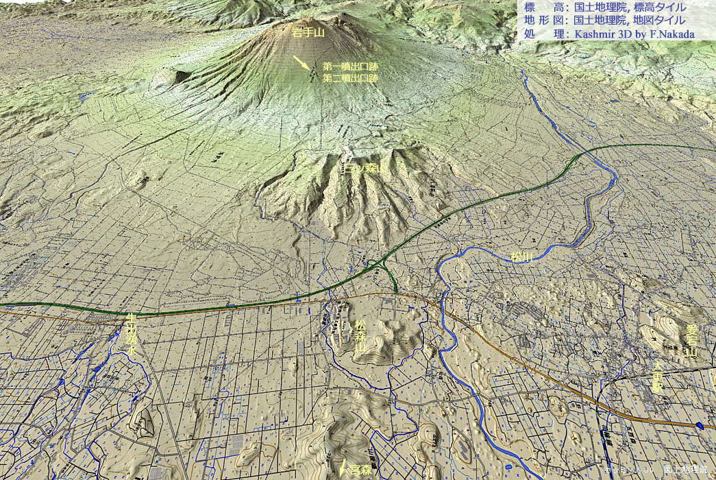 | 地形と地質の三次元イメージ : 岩手山(南山麓) |