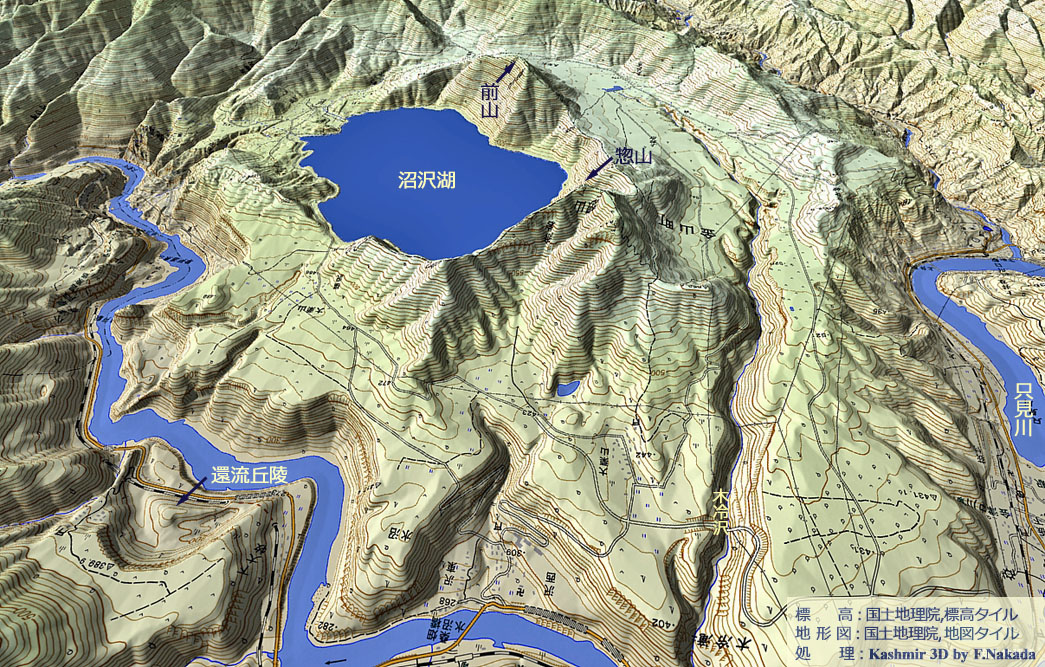 | 地形と地質の三次元イメージ : 沼沢火山 |