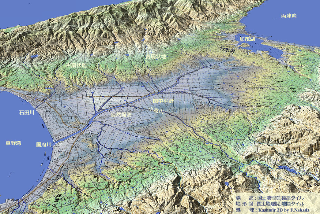 | 地形と地質の三次元イメージ : 国中平野と加茂湖 |