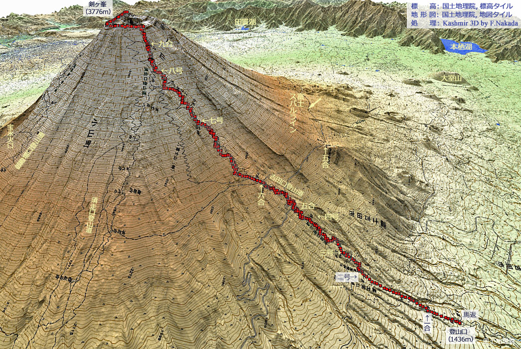 | 地形と地質の三次元イメージ : 富士吉田市(河口湖~山中湖)側の裾野 |
