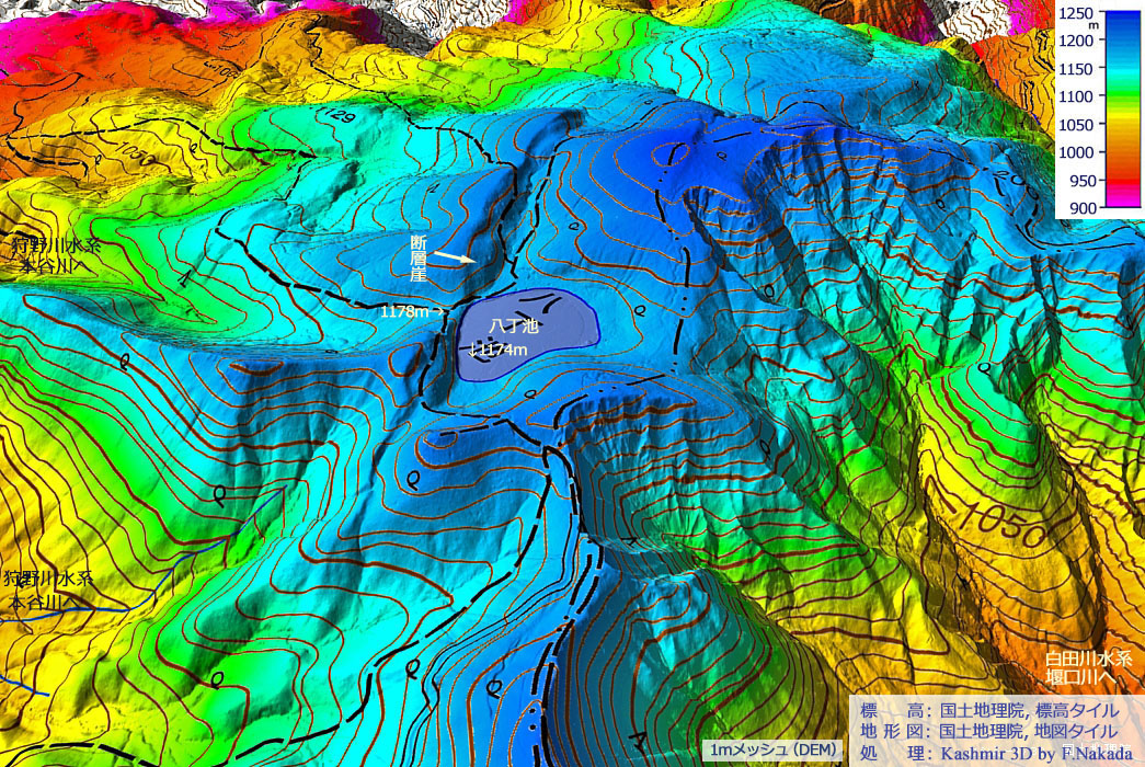 | 標高段彩図の三次元イメージ : 八丁池付近 |