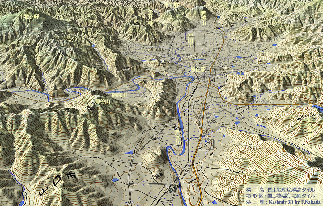 | 地形の三次元イメージ : 徳佐盆地(北部) |