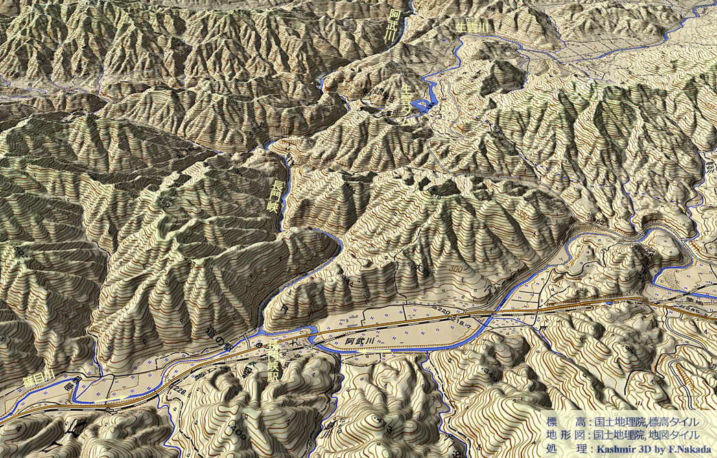 | 地形の三次元イメージ : 阿武川の進入口 |