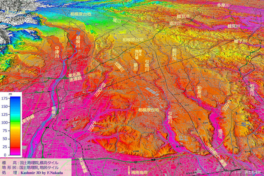 | 神奈川県:相模川左岸に広がる相模原台地(相模野台地) |