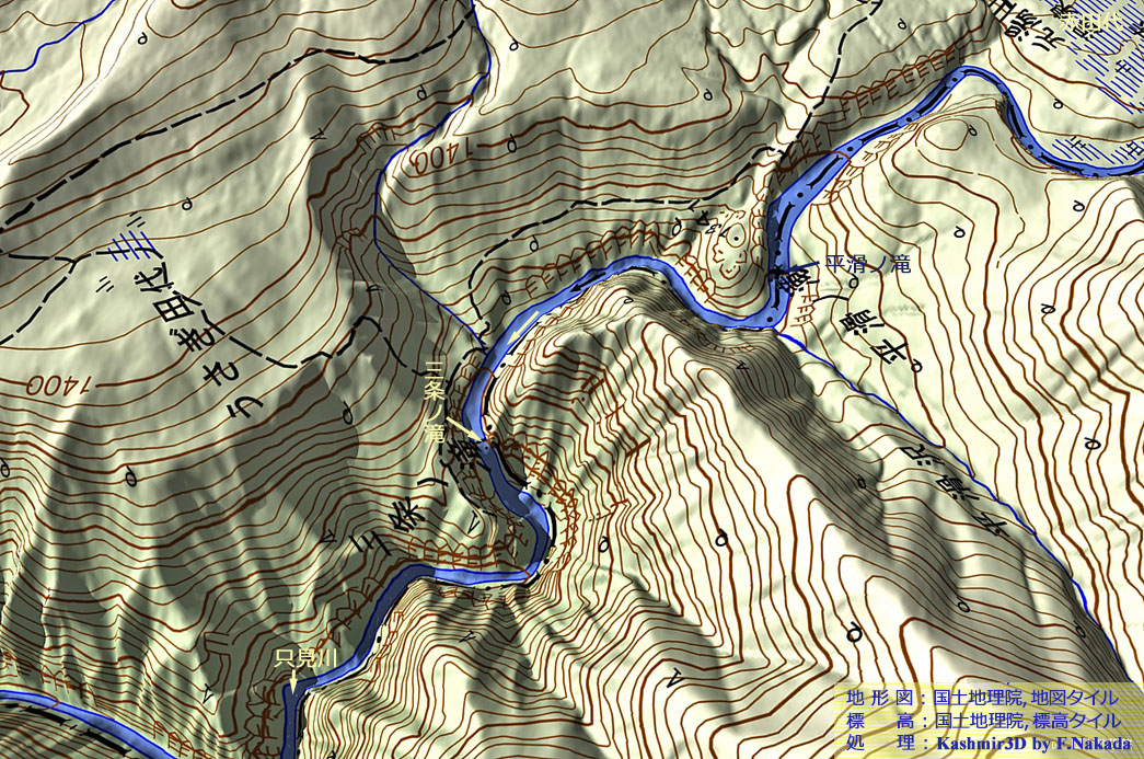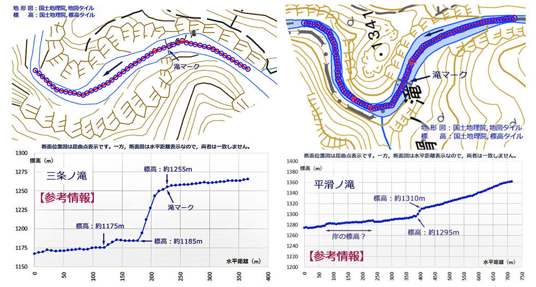 | 【現場写真】 (左)平滑ノ滝(右)三条ノ滝 |