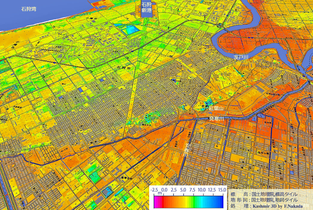 | 地形と地質の三次元イメージ : 石狩平野 |
