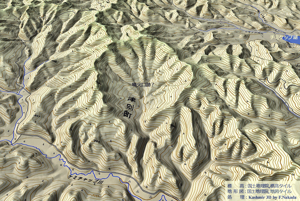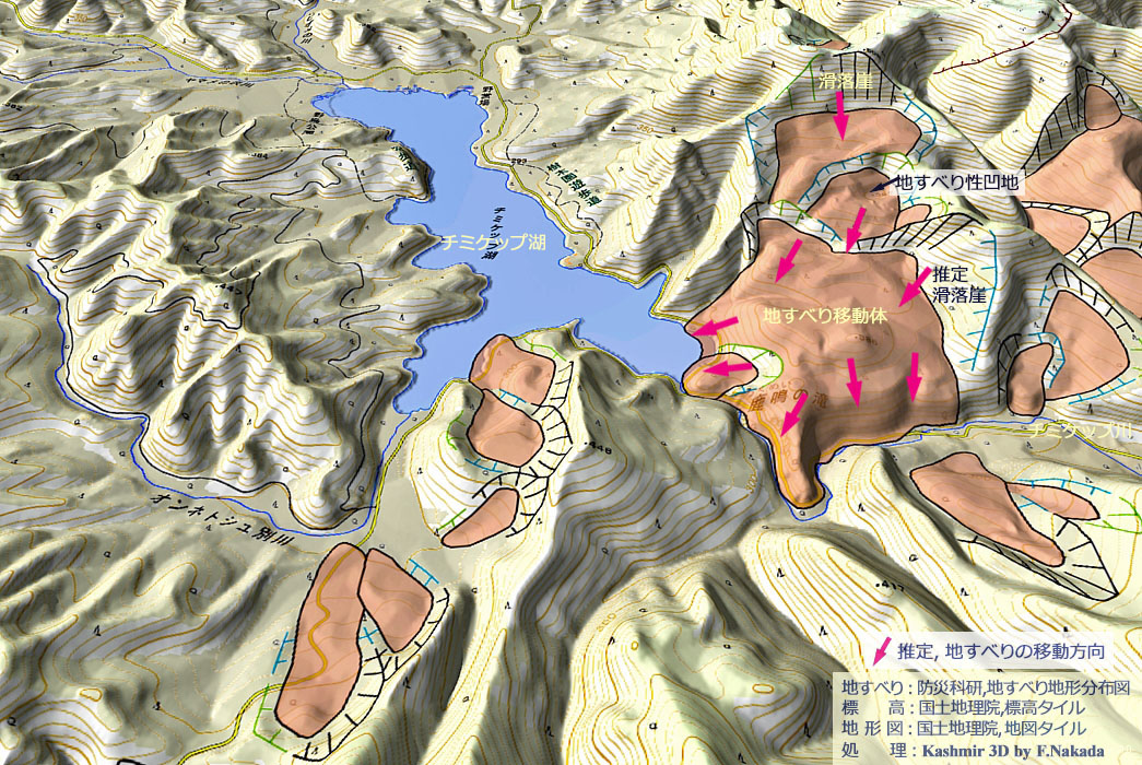 | 地すべり地形分布図の三次元イメージ : チミケップ湖 |