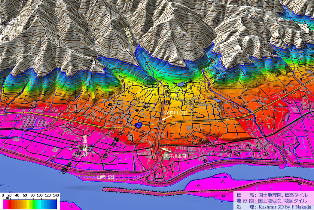 | 地形の三次元イメージ : 山崎北谷の天井川部分 |