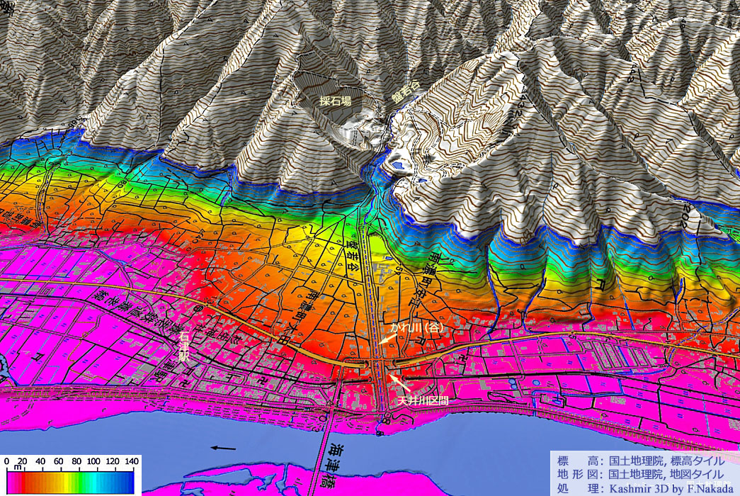 | 地形の三次元イメージ : 山崎北谷の扇状地 |