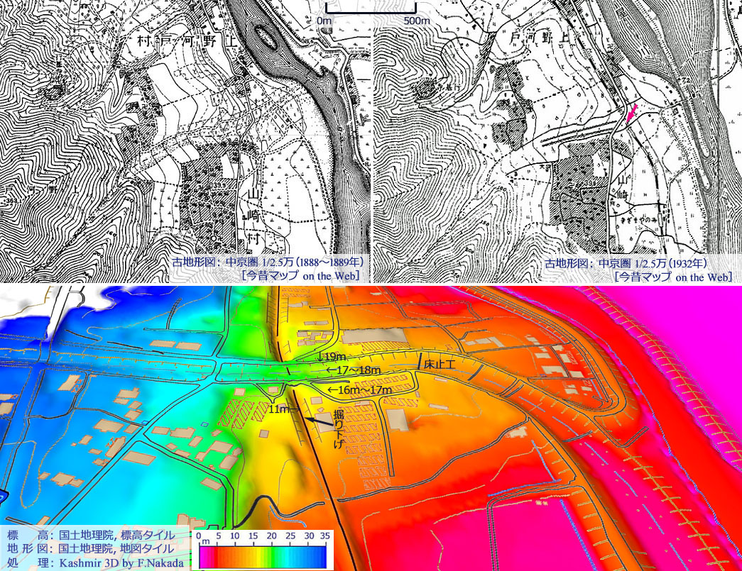 | 地形の三次元イメージ : 盤若谷の天井川区間 |