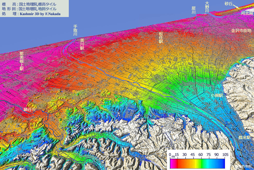 | 地形の三次元イメージ : 手取川扇端部 |