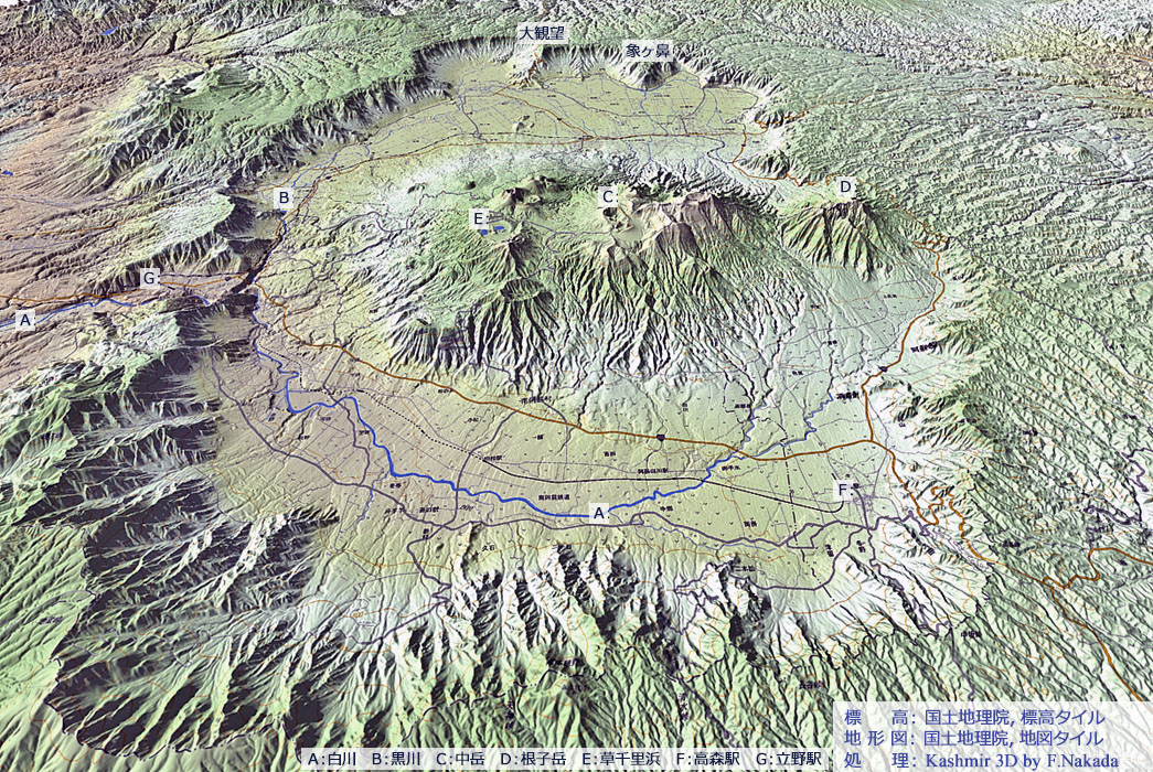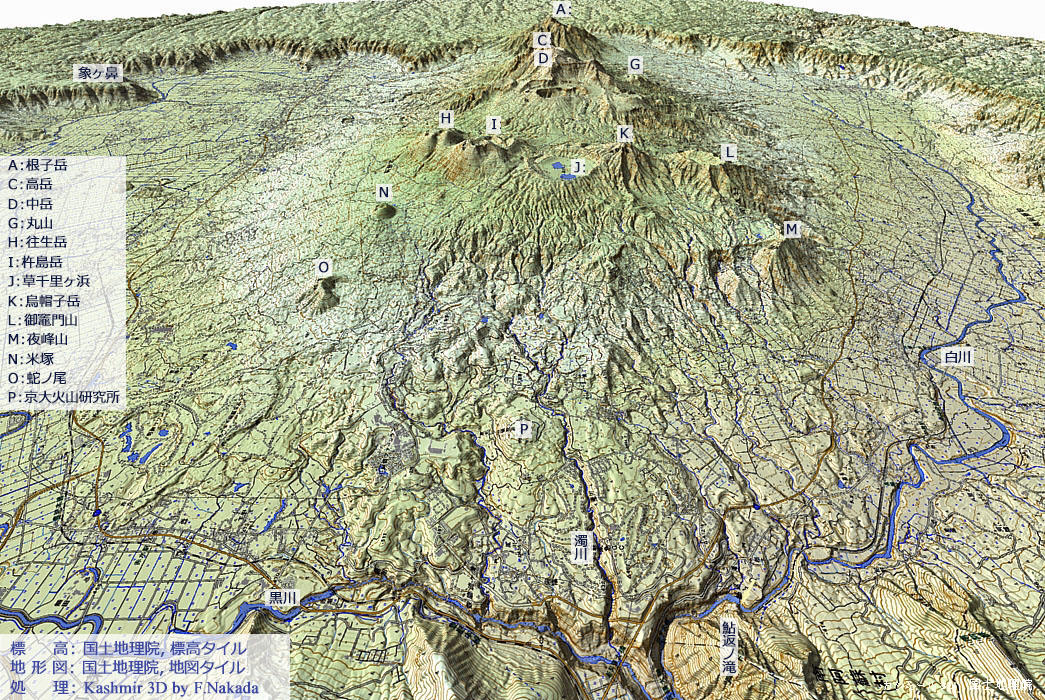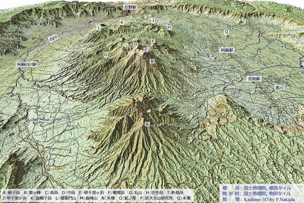 | 地形と地質の三次元イメージ : 阿蘇火山 |