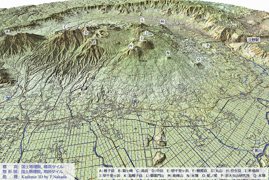 三次元地形図上でマウスクリックすると「5万分の1 阿蘇火山地質図(出典,下記)」を表示します。 ダブルクリックで元に戻ります。![]() 5万分の1 阿蘇火山地質図 の主な凡例は,ここをクリックしてください。 別ウィンドウで表示します。 |