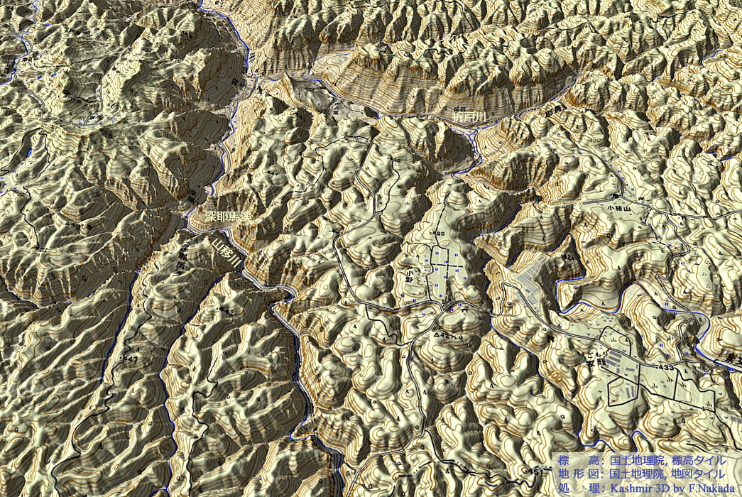 | 地形の三次元イメージ : 裏耶馬渓 |