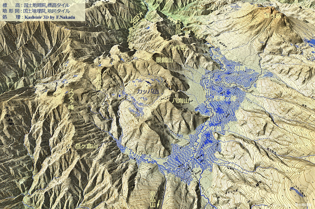 | 地形の三次元イメージ : カッパ山の分水界 |