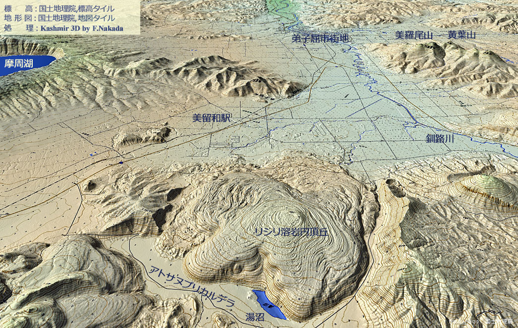 | 地形の三次元イメージ : アトサヌプリ火山 |