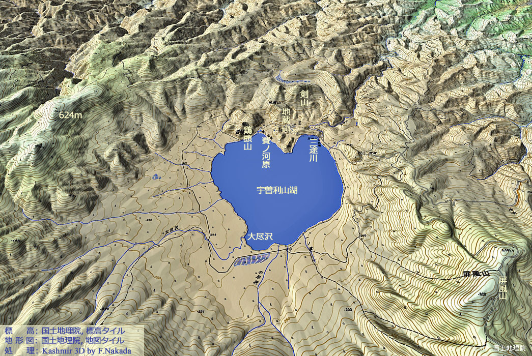 | 地形の三次元イメージ : 宇曽利山湖(火口原湖) |