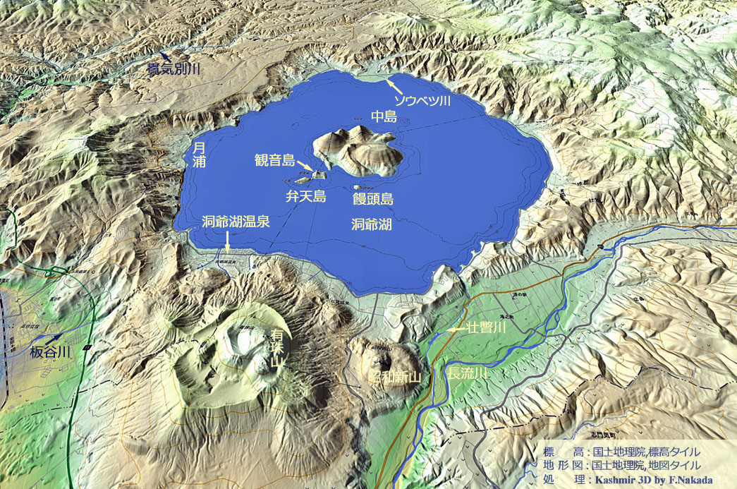 | 地形の三次元イメージ : 壮瞥川流出口付近 |