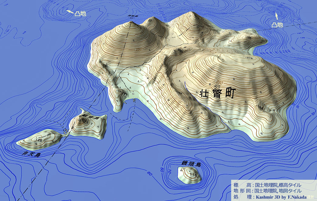| 地形の三次元イメージ : 中島(中央火口丘) |