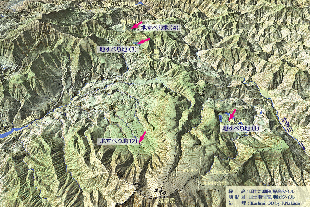 | 地すべり地形の三次元イメージ(4) : 三条市,鞍掛峠北斜面,栃中瀬沢流域 |