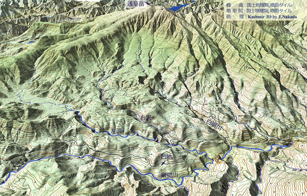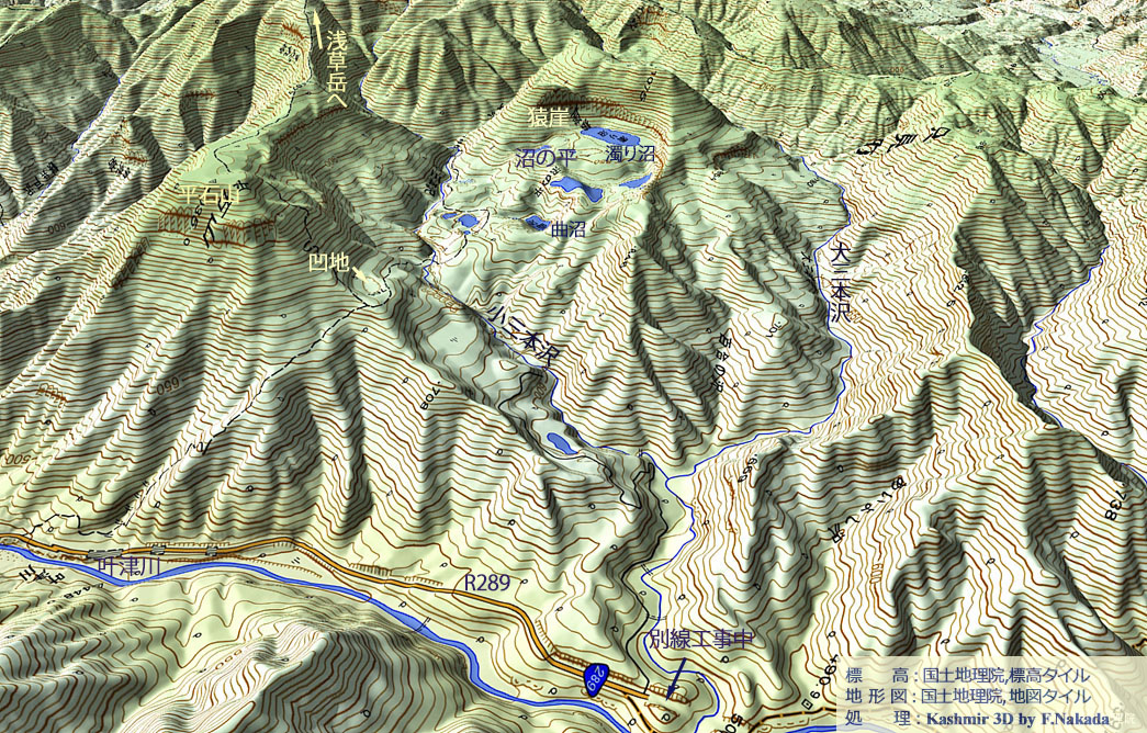 | 地すべり地形の三次元イメージ(2) : 魚沼市,浅草岳北斜面 |