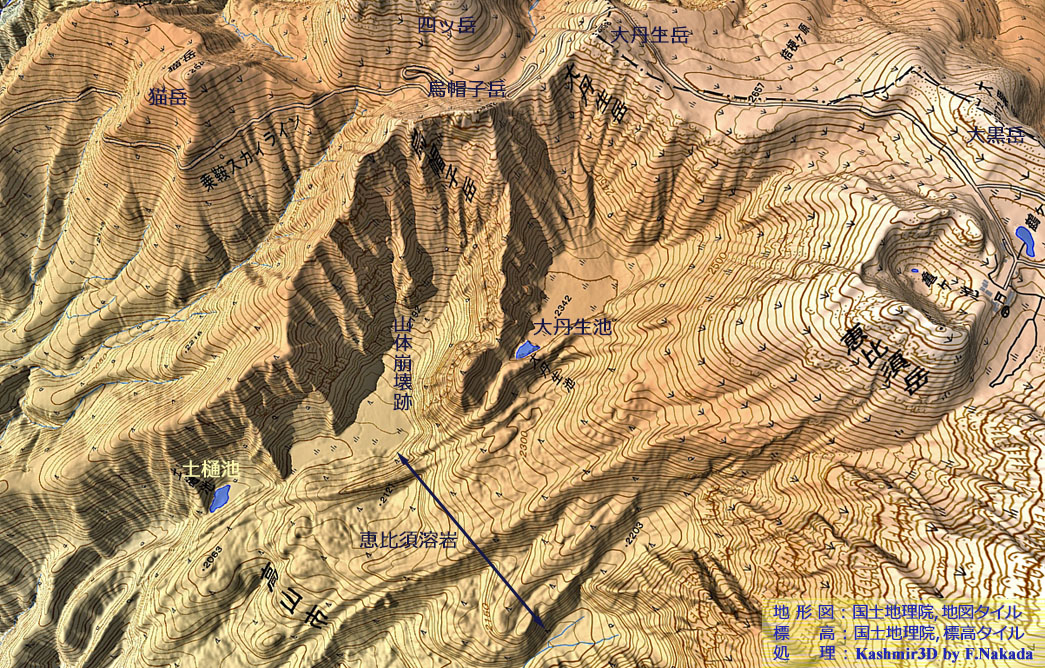 | 地形の三次元イメージ : 乗鞍火山概観 |