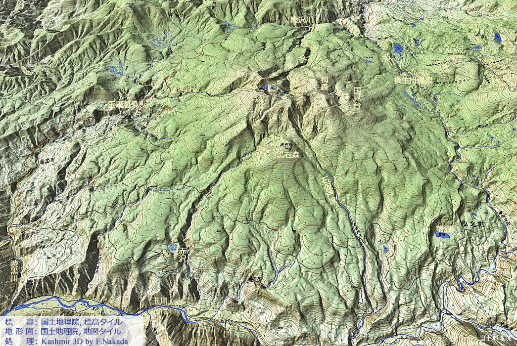 | 地形と地質の三次元イメージ : 秋田焼山火山と玉川温泉 |
