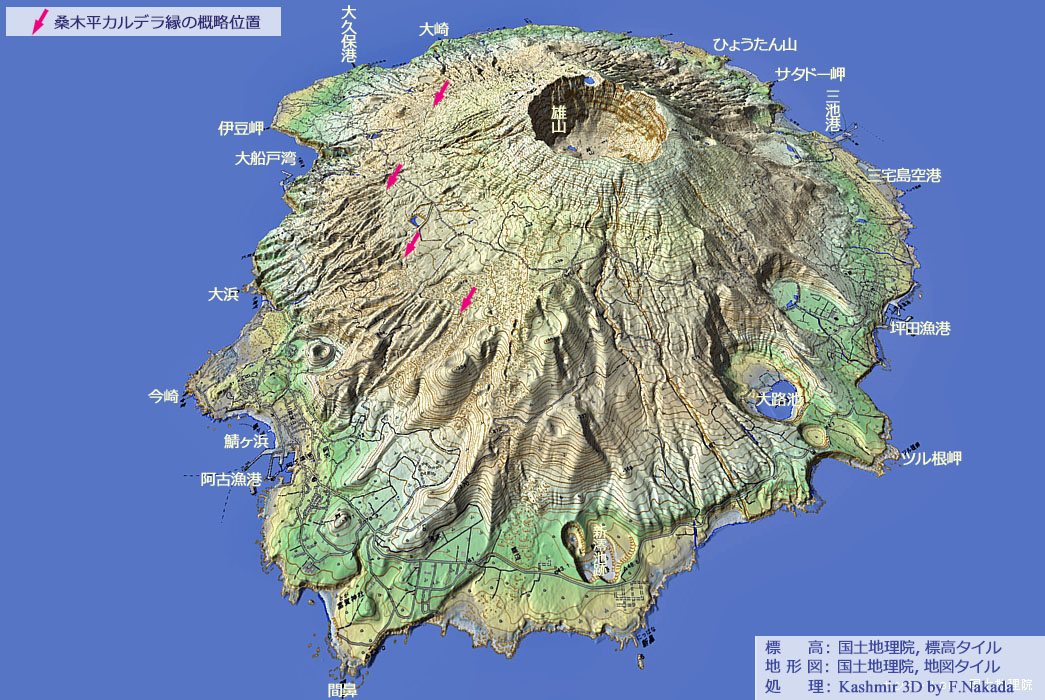 | 地形と地質の三次元イメージ : 三宅島火山を構成する3つのカルデラ |
