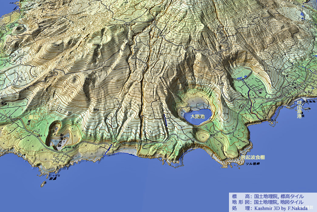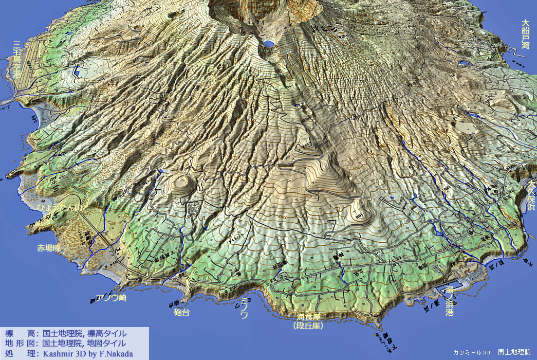 | 地形と地質の三次元イメージ : 三宅島火山 |