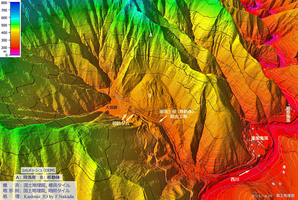 | 1mDEMによる標高段彩図 :大畑瀞とその周辺 |