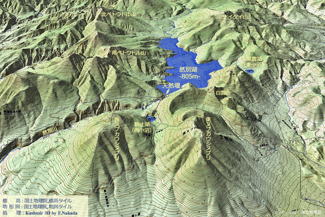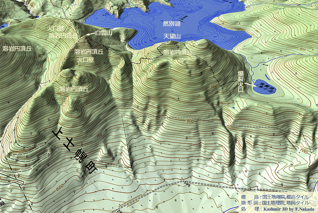 | 地形と地質の三次元イメージ : 然別火山群及び然別湖群 |