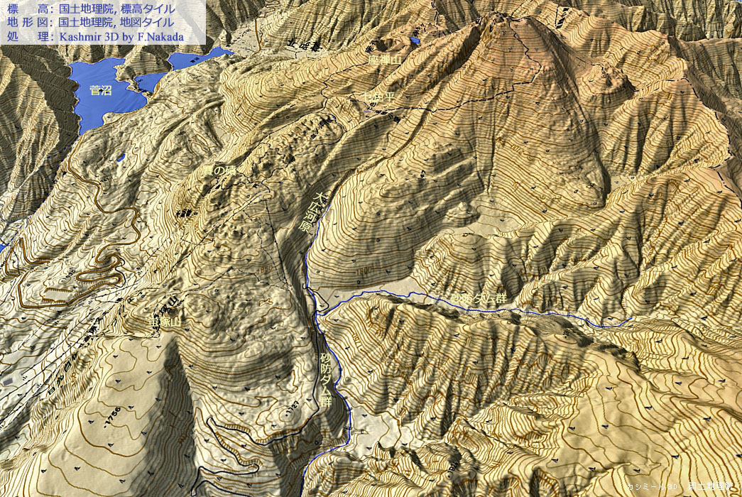 | 地形と地質の三次元イメージ : 日光白根火山と周辺の山々 |