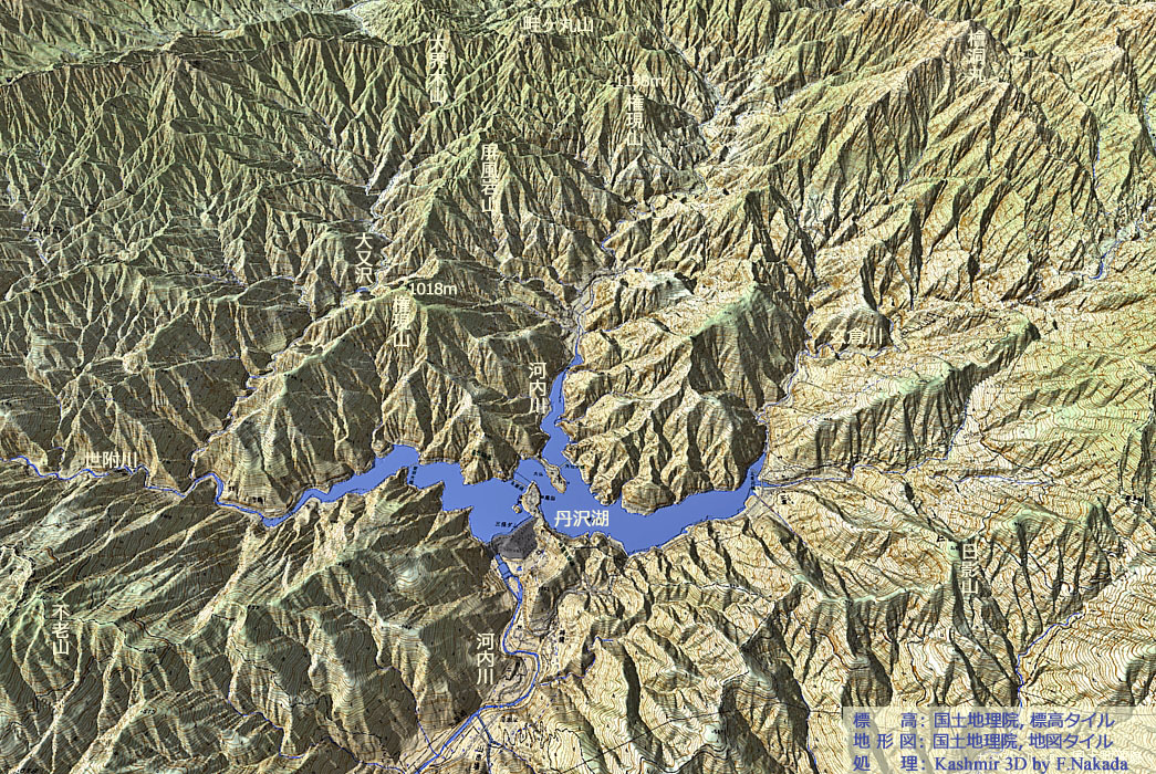 ‼マウスオーバー‼ 地図上にマウスを乗せてください。産総研・地質調査総合センターの「1/20万 シームレス地質図(出典,下記)」を表示します。![]() 大平洋プレート上の火山島が,プレートの水平移動に伴って略北西方向に移動し,日本列島に衝突しました。 新第三紀中新世(約500万年前頃)の出来事です。 衝突による圧力で「丹沢山地」ができたのです。 衝突の前後に「花崗閃緑岩」の上昇があり,その熱によって付加体の「玄武岩」などが「変成岩」に変わった,と考えられます。 |
