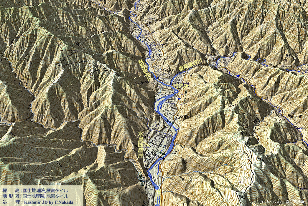 | 地形と活断層図の三次元イメージ : 根尾谷核心部[事務局作成] |