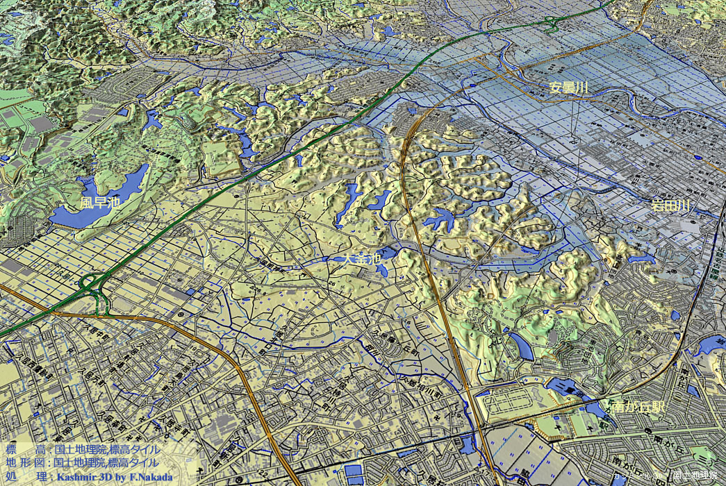 | 地形と地質の三次元イメージ(産総研・1/5万 地質図幅:津西部) |
