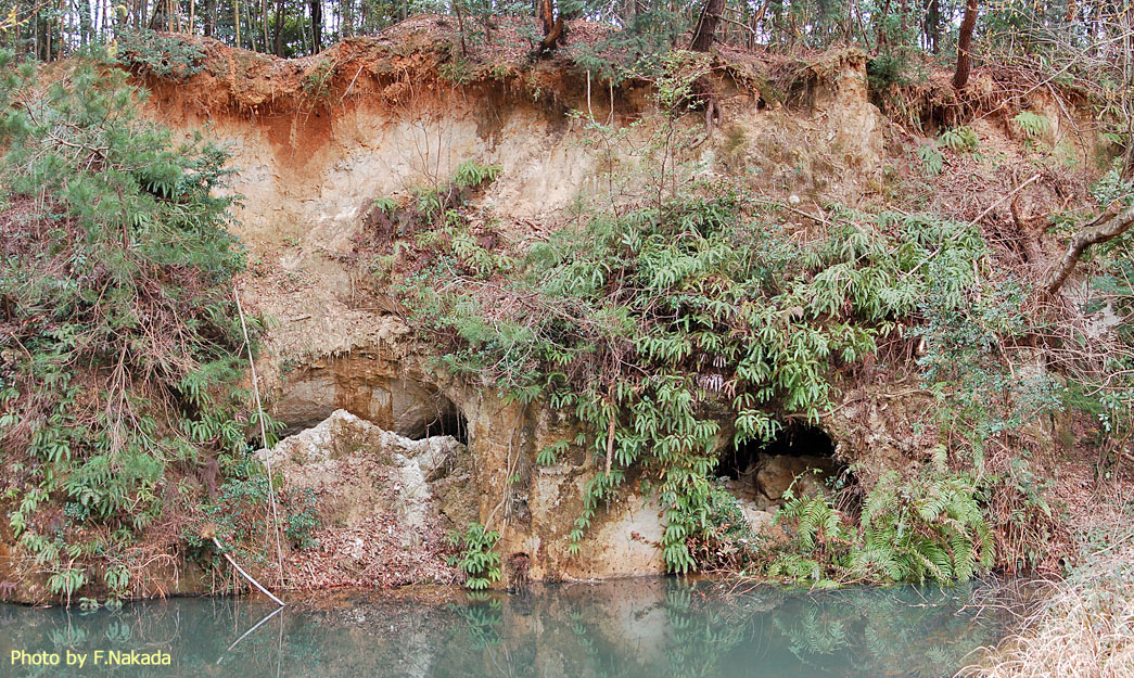 ![]() 大規模な坑道掘削による採取場の跡地です。 写真撮影後しばらくして整地されてしまい,現在は残っていません。 |