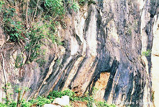 露頭写真:クワイ(クウェー)河岸の石灰岩