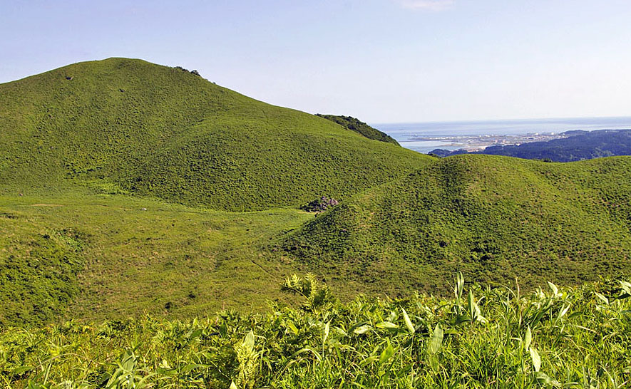 ![]() 鬼の隠れ里,近景。 後は,寒風山頂の回転展望台。 |