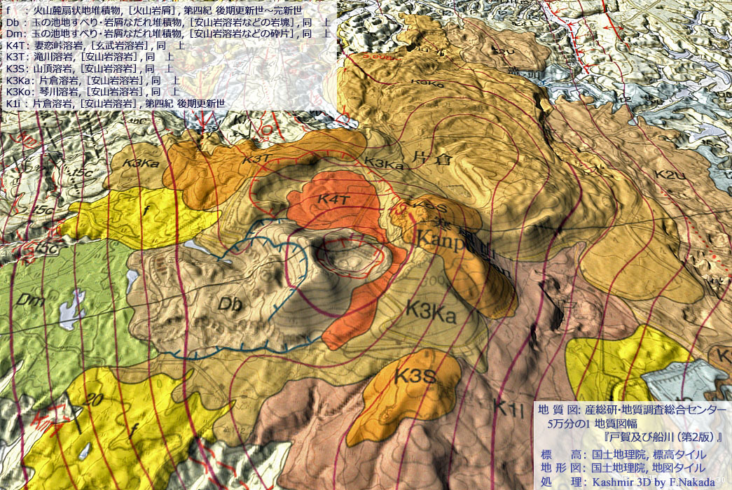 ![]() ![]() 5万分の1地質図幅『戸賀及び船川(第2版)』(出典,下記) |