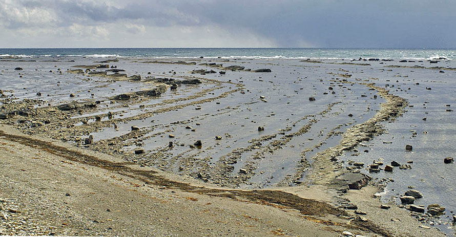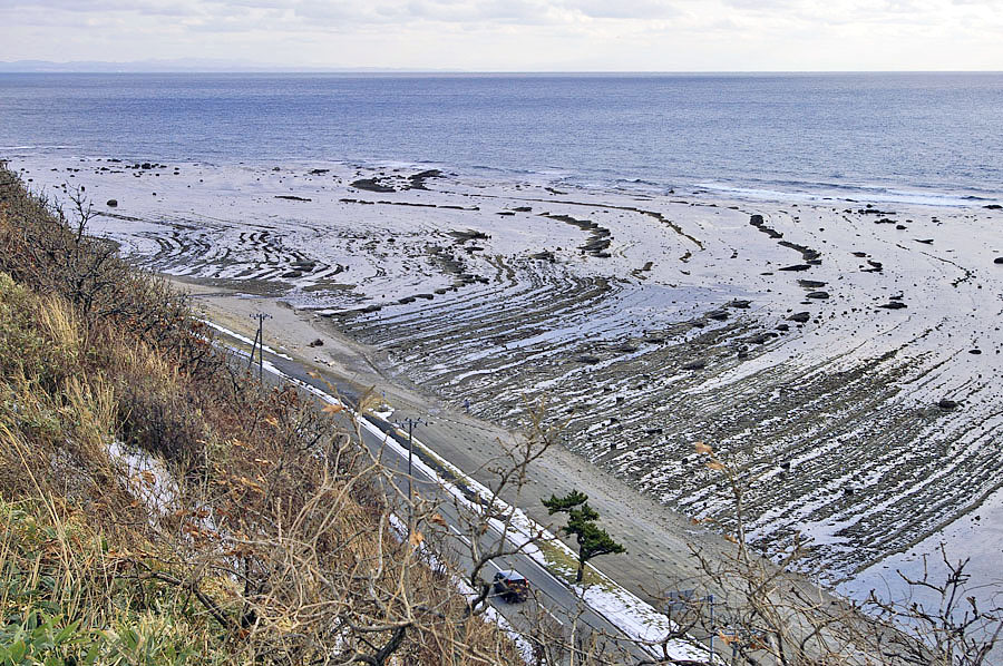 ![]() 海岸からの鬼の洗濯板。 |