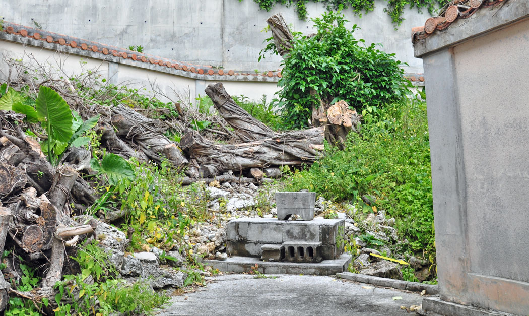 ![]() 中央の拝壇は,もともと祀られてきたNo.37壕です。 右下の新しい拝壇は,No.36壕から移設されました。 撮影:2018年5月。 |