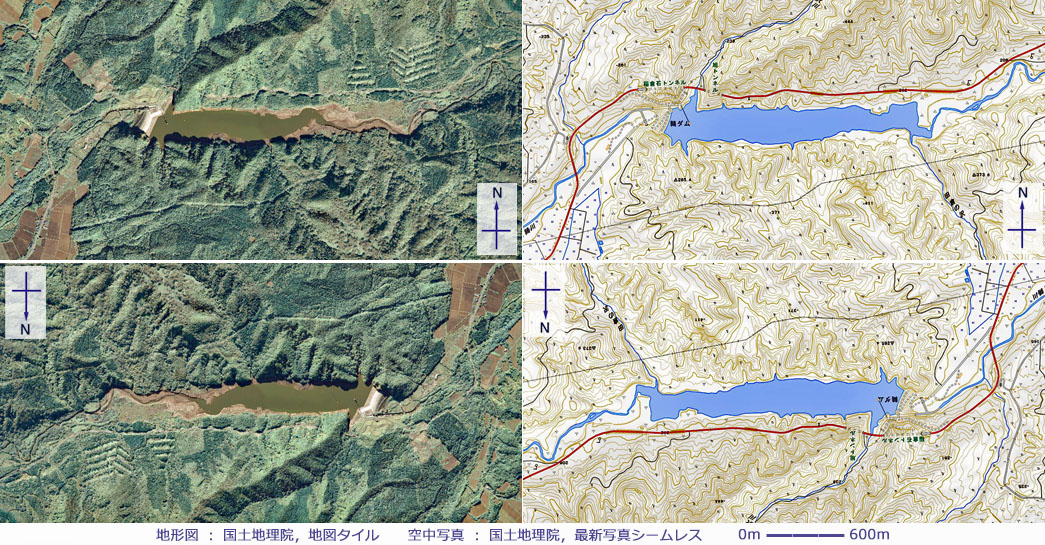 でマウスクリックすると「180°回転させた画像(空中写真,地理院タイル)」を表示します。 ダブルクリックで元に戻ります。![]() |