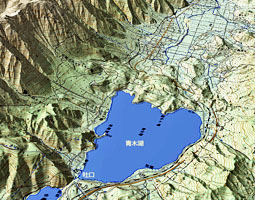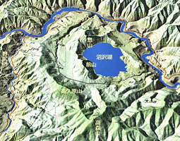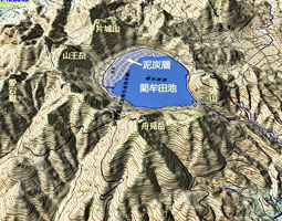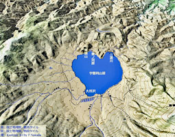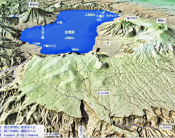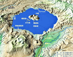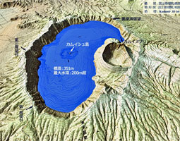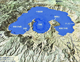 - ┣ カルデラ湖:火山の噴火などで土地が鍋状に陥没し,その窪地(凹地)に水が溜ってできた湖です。