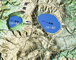 - ┗ 火口湖,マール:火口に水が溜っている湖です。