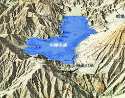 - ┣ 堆積性堰止湖:本流など大きな川が運んできた大量の土砂が,支流の合流部を堰き止めてできた湖です。